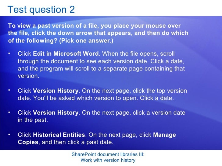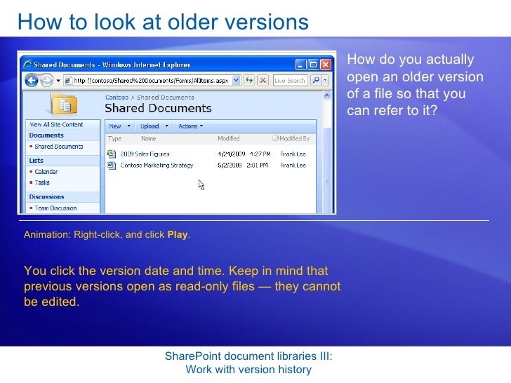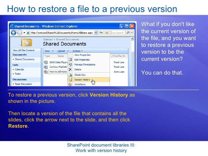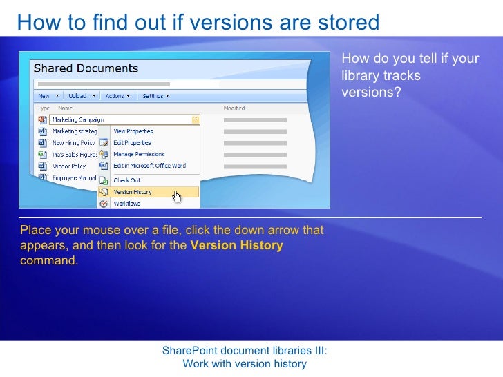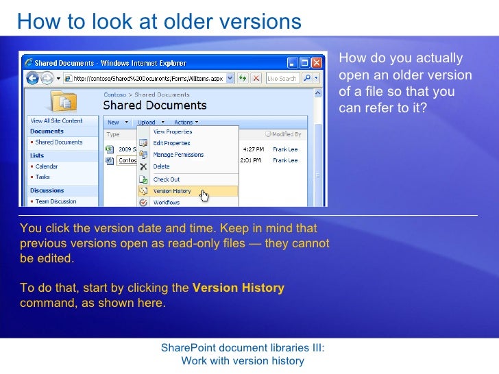 Share Point Server 2007- Document Libraries 3- Work With Version History