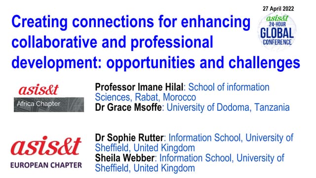 This is a presentation from a session given by Lyn Parker and Sheila Webber on 10 June 2008. It was an event of the Information Literacy Network of CILASS (Centre for Inquiry Based Learning in the Arts and Social Sciences). It includes slides which record points raised by participants in the session, an internal event which took place at Sheffield University.