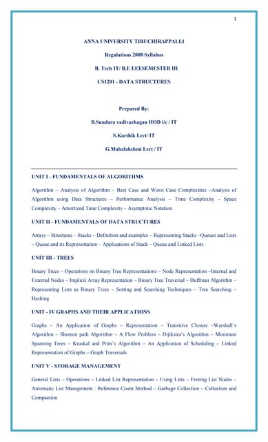 1. 1. Lecture given at the International Summer School Modern Computational Science (August 15-26, 2011, Oldenburg, Germany) Basic Introduction into Algorithms and Data Structures Frauke Liers Computer Science Department University of Cologne D-50969 Cologne Germany Abstract. This chapter gives a brief introduction into basic data structures and algorithms, together with references to tutorials available in the literature. We first introduce fundamental notation and algorithmic concepts. We then explain several sorting algorithms and give small examples. As fundamental data structures, we in- troduce linked lists, trees and graphs. Implementations are given in the programming language C. Contents 1 Introduction . . . . . . . . . . . . . . . . . . . . . . . . . . . 2 2 Sorting . . . . . . . . . . . . . . . . . . . . . . . . . . . . . . 2 2.1 Insertion Sort . . . . . . . . . . . . . . . . . . . . . . . . . . 3 2.1.1 Some Basic Notation and Analysis of Insertion Sort . . . 4 2.2 Sorting using the Divide-and-Conquer Principle . . . . . . . 7 2.2.1 Merge Sort . . . . . . . . . . . . . . . . . . . . . . . . . . 7 2.2.2 Quicksort . . . . . . . . . . . . . . . . . . . . . . . . . . . 9 2.3 A Lower Bound on the Performance of Sorting Algorithms 12 3 Select the k-th smallest element . . . . . . . . . . . . . . . 12 4 Binary Search . . . . . . . . . . . . . . . . . . . . . . . . . . 13 5 Elementary Data Structures . . . . . . . . . . . . . . . . . 14 5.1 Stacks . . . . . . . . . . . . . . . . . . . . . . . . . . . . . . 15 1
