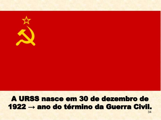 34. 34. 34 A URSS nasce em 30 de dezembro de 1922 → ano do término da Guerra Civil.