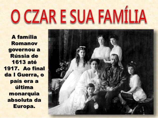 4. 4. A família Romanov governou a Rússia de 1613 até 1917. Ao final da I Guerra, o país era a última monarquia absoluta da Europa.