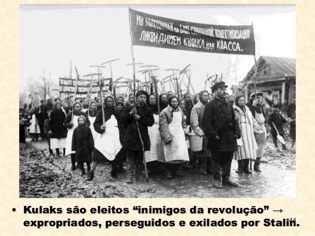 44. 44. 44 • Kulaks são eleitos “inimigos da revolução” → expropriados, perseguidos e exilados por Stalin.