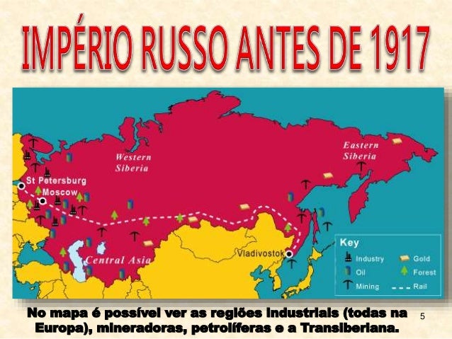 5. 5. 5No mapa é possível ver as regiões industriais (todas na Europa), mineradoras, petrolíferas e a Transiberiana.
