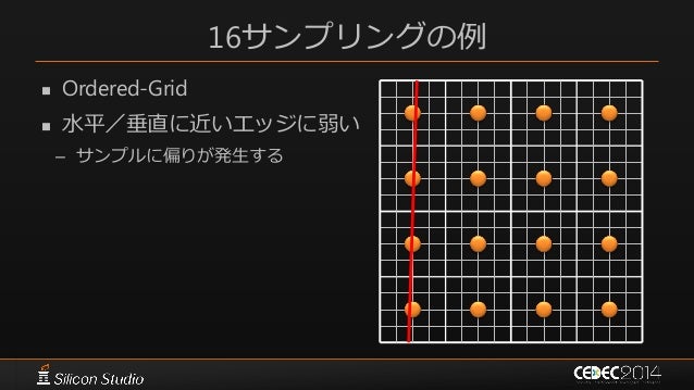 117. 117. 16サンプリングの例  Ordered-Grid  水平/垂直に近いエッジに弱い – サンプルに偏りが発生する