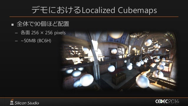 50. 50. デモにおけるLocalized Cubemaps  全体で90個ほど配置 – 各面 256 × 256 pixels – ~50MB (BC6H)