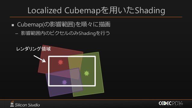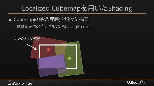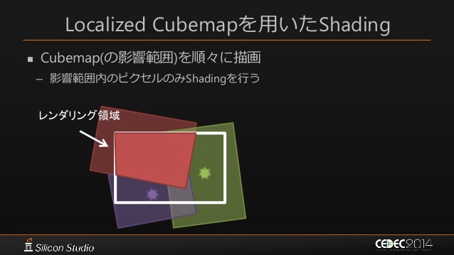 51. 51. Localized Cubemapを用いたShading  Cubemap(の影響範囲)を順々に描画 – 影響範囲内のピクセルのみShadingを行う レンダリング領域