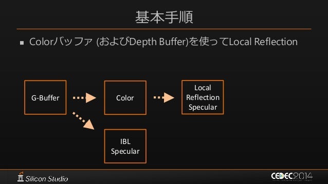 74. 74. 基本手順  Colorバッファ (およびDepth Buffer)を使ってLocal Reflection G-Buffer Color IBL Specular Local Reflection Specular