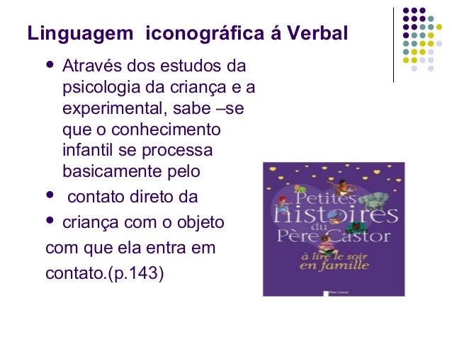 25. 25. Linguagem iconográfica á Verbal  Através dos estudos da psicologia da criança e a experimental, sabe –se que o conhecimento infantil se processa basicamente pelo  contato direto da  criança com o objeto com que ela entra em contato.(p.143)
