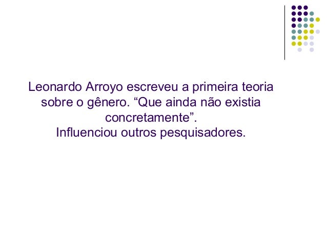 3. 3. Leonardo Arroyo escreveu a primeira teoria sobre o gênero. “Que ainda não existia concretamente”. Influenciou outros pesquisadores.