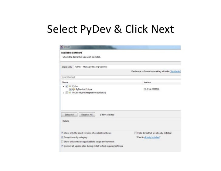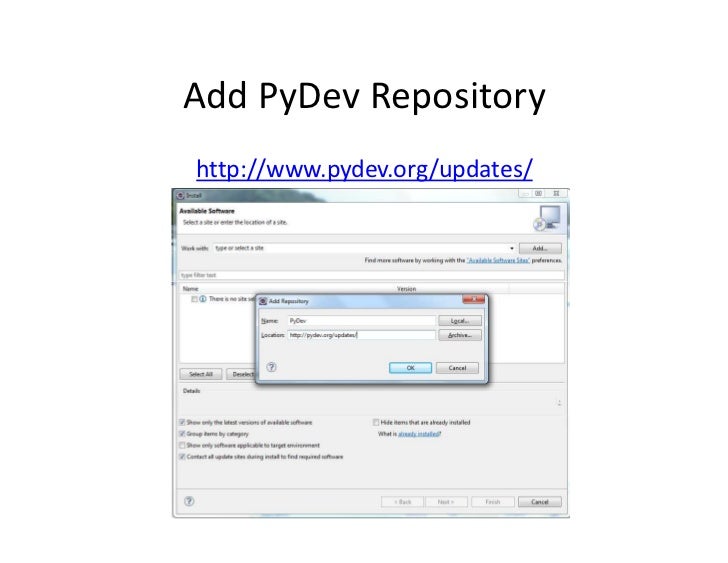 11. 11. Add PyDev Repository http://www.pydev.org/updates/