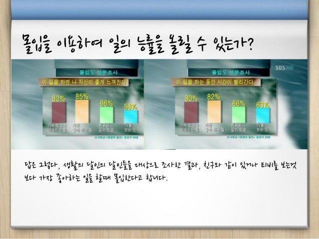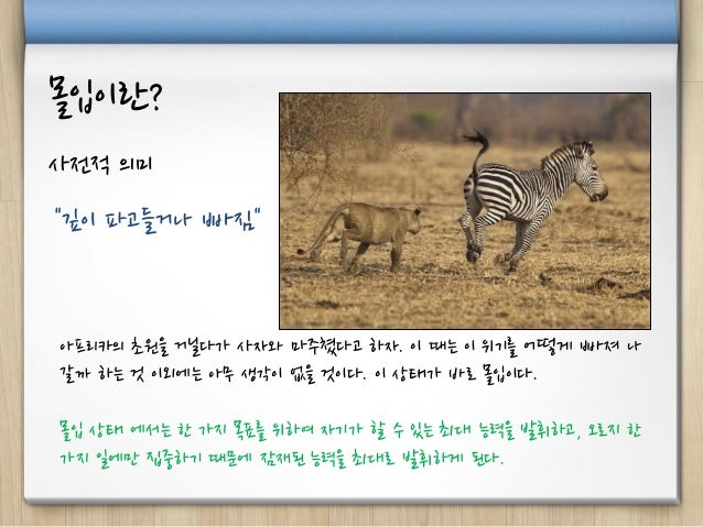 평소 다큐를 통해 관심 있던 주제였던 몰입에 관해 팀내 세미나를 준비하여 진행하였습니다.