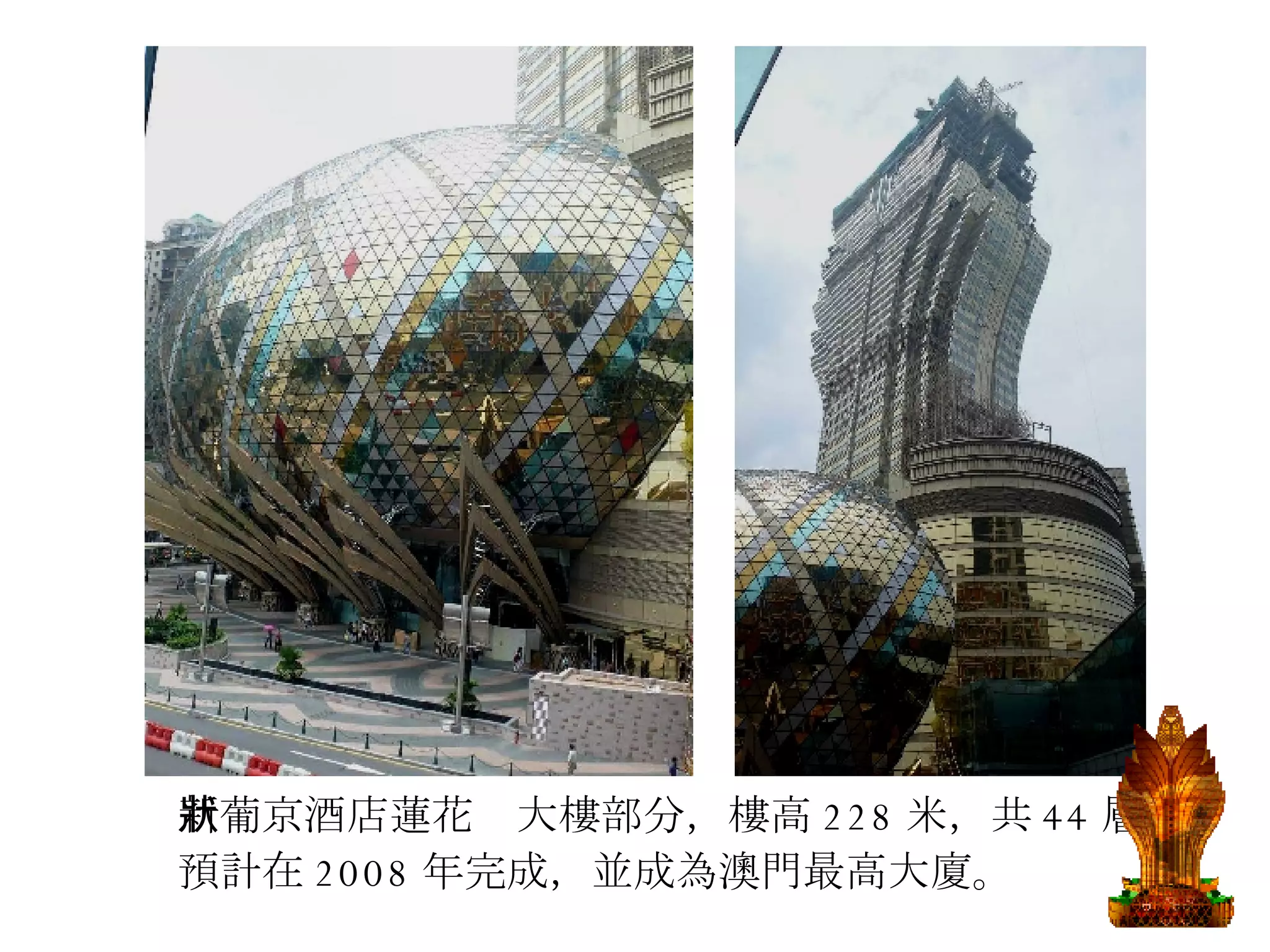 新葡京酒店蓮花狀大樓部分,樓高 228 米,共