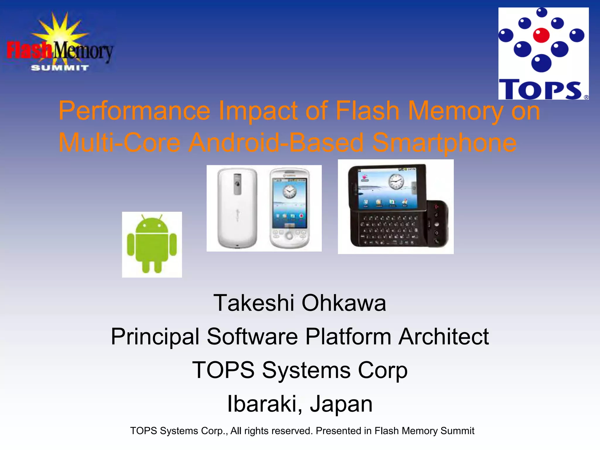 1) TOPS Systems developed a virtual platform called "Android on VisualSim" to analyze the performance and power impact of flash memory on multi-core Android smartphones.