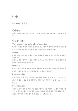 nCk로 나타낸다. 중복조합이 있다. C(n, k) = n! / k!(n-k)!