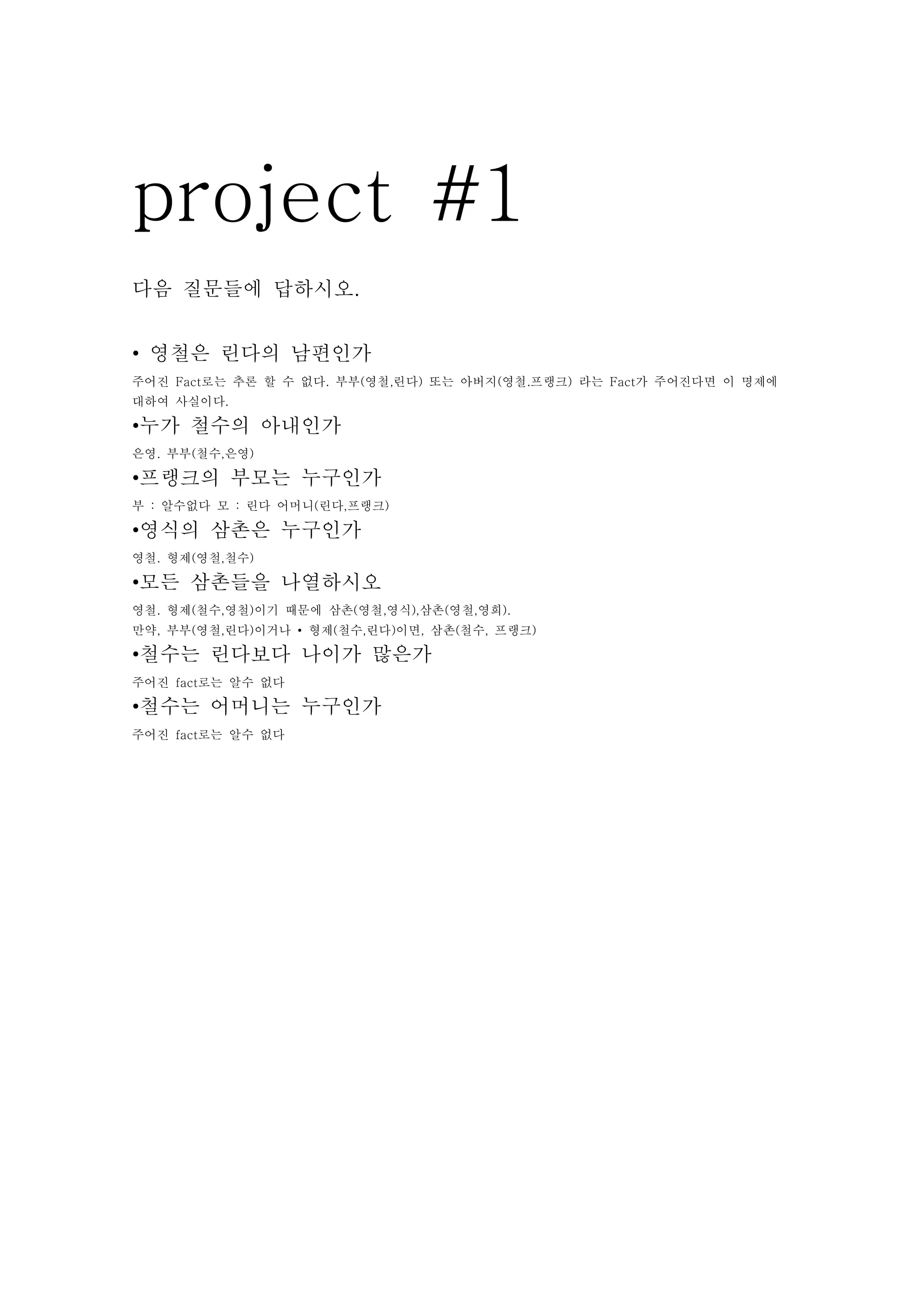 주어진 Fact로는 추론 할 수 없다 . 부부 (영철 ,린다) 또는 아버지 (영철 .프랭크) 라는 Fact가 주어진다면 이 명제에