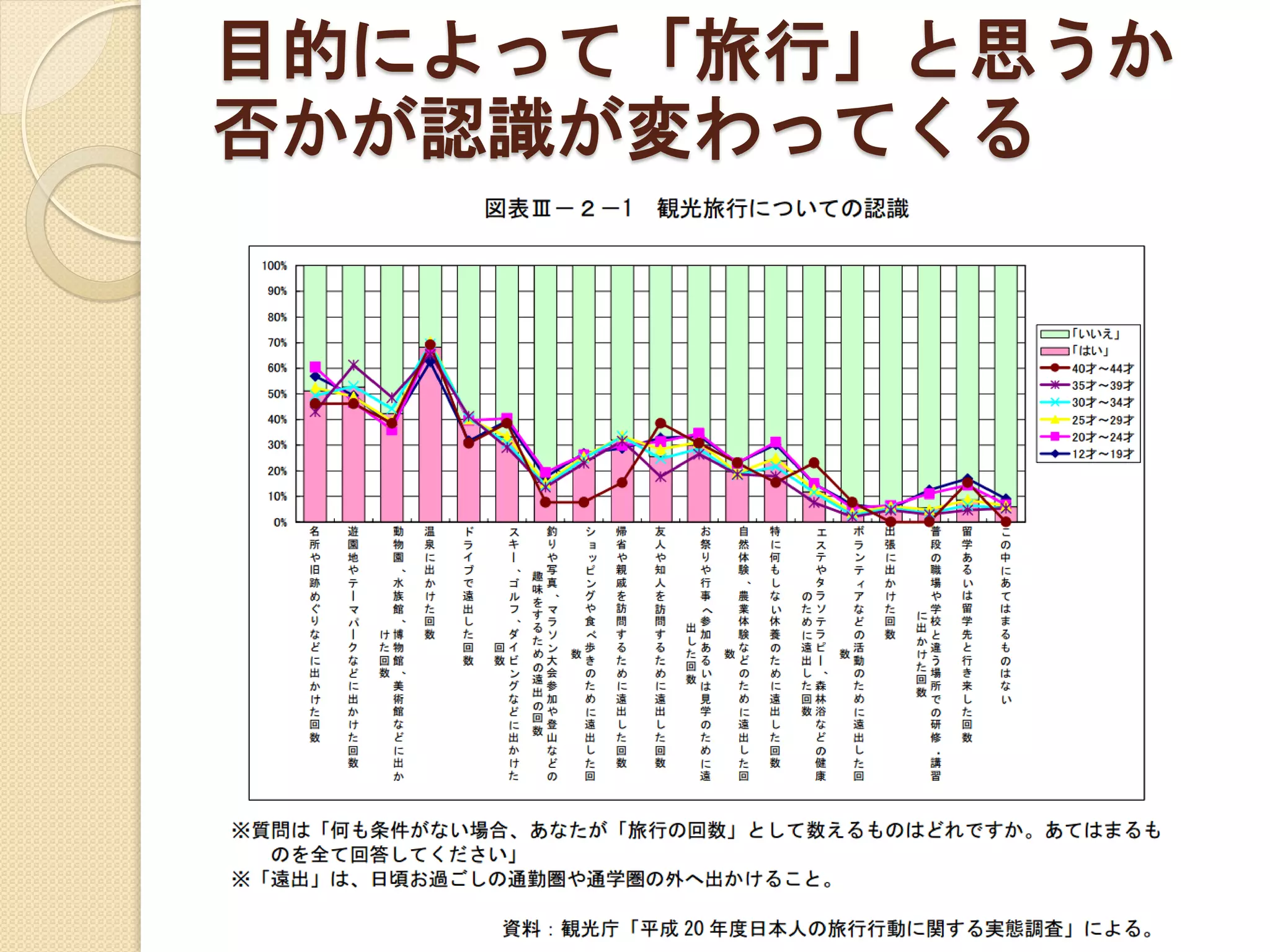 目的によって「旅行」と思うか 否かが認識が変わってくる