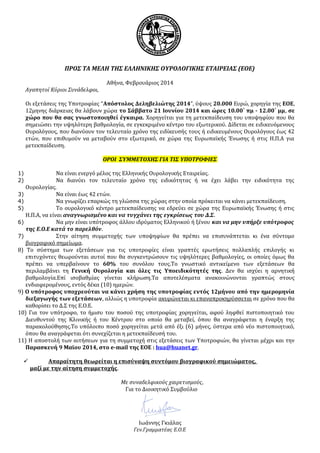 Παρασκευή 9 Μαϊου 2014, στο e-mail της ΕΟΕ : hua@huanet.gr.