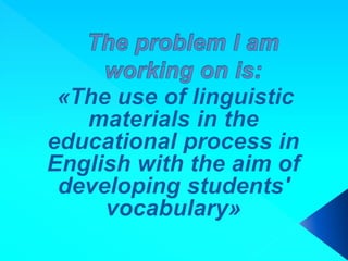 This document discusses studying language and culture through various linguistic materials including poems, magazines, articles, authentic dialogue, and songs. These materials provide exposure to the target language and culture in short snippets that can be analyzed and discussed.