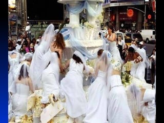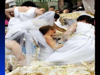 الوثيقة تتحدث عن حفل زواج جماعي غير تقليدي حيث تم تضمين جوائز في كعكة الزفاف، بما في ذلك شيك بقيمة خمسين ألف دولار. كما تتناول صفات المرأة من الناحية الفيزيائية والكيميائية، موضحة أن لديها خصائص تتراوح بين الانفعال والتغيير حسب الظروف. تحتوي أيضًا على تحذيرات عن المرأة ككيان معقد يمكن أن يتفاعل بشكل متقلب.