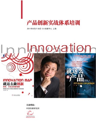 The document discusses innovation and provides information about innovation workshops and conferences. It lists workshops on topics like R&D project management, product development innovation, and creative thinking tools led by experts in these areas. Dates and locations are provided. The document also lists some major companies that have participated in previous innovation events. It concludes by providing contact information for a company called Inno Enterprise that appears to organize these innovation events.