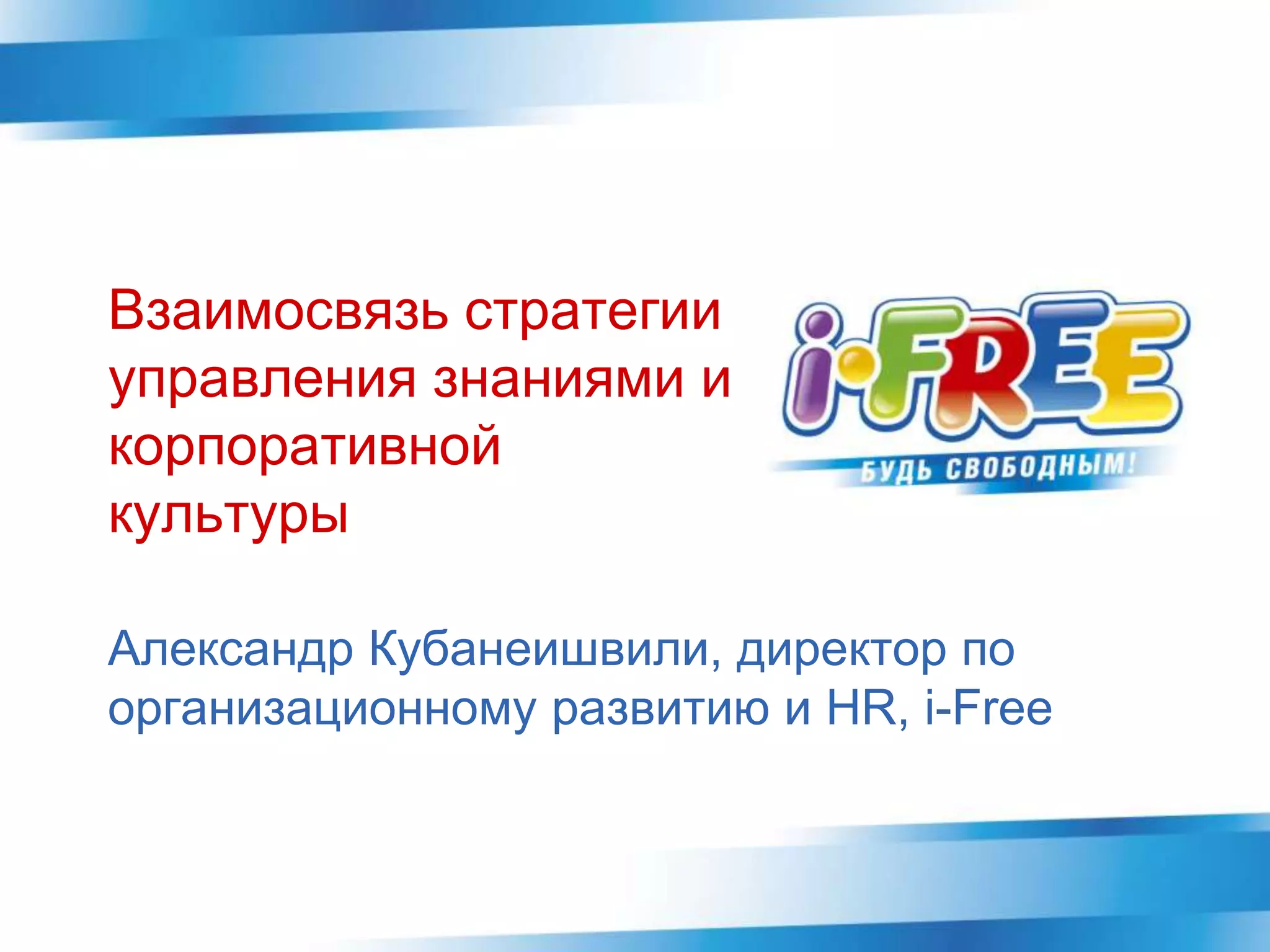 Документ рассматривает взаимосвязь стратегии управления знаниями с корпоративной культурой компании i-free, работающей на высокорискованном и динамичном рынке мобильных услуг. Основные направления деятельности компании включают B2C и B2B сервисы, а корпоративная культура способствует инновациям и обмену знаниями через использование интранет-ресурсов и системы мотивации. Стратегия управления знаниями направлена на быстрое вовлечение новых сотрудников и эффективное взаимодействие в распределенной команде.