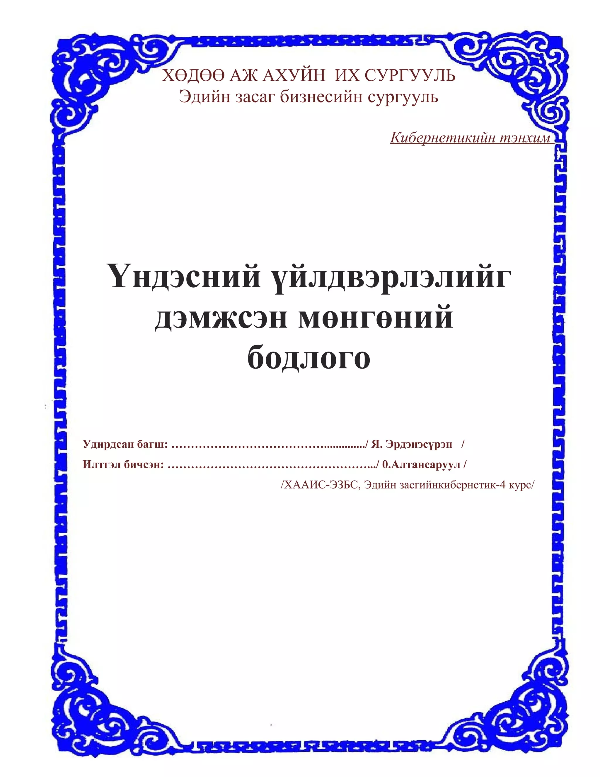/ХААИС-ЭЗБС, Эдийн засгийнкибернетик-4 курс/