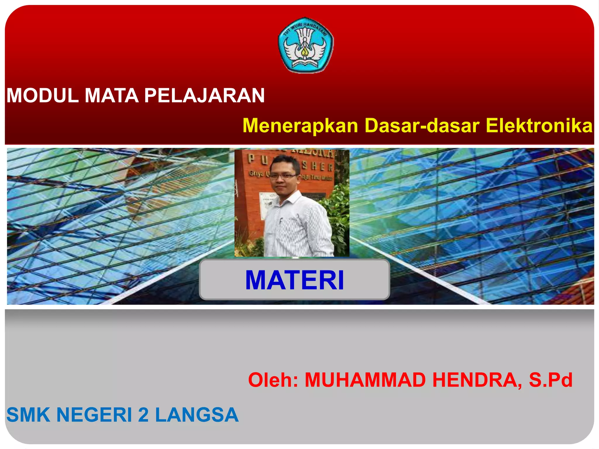 Dokumen tersebut membahas tentang modul pelajaran menerapkan dasar-dasar elektronika yang mencakup komponen pasif, komponen aktif, komponen optik, karakteristik komponen pasif dan aktif, serta konsep rangkaian elektronika.