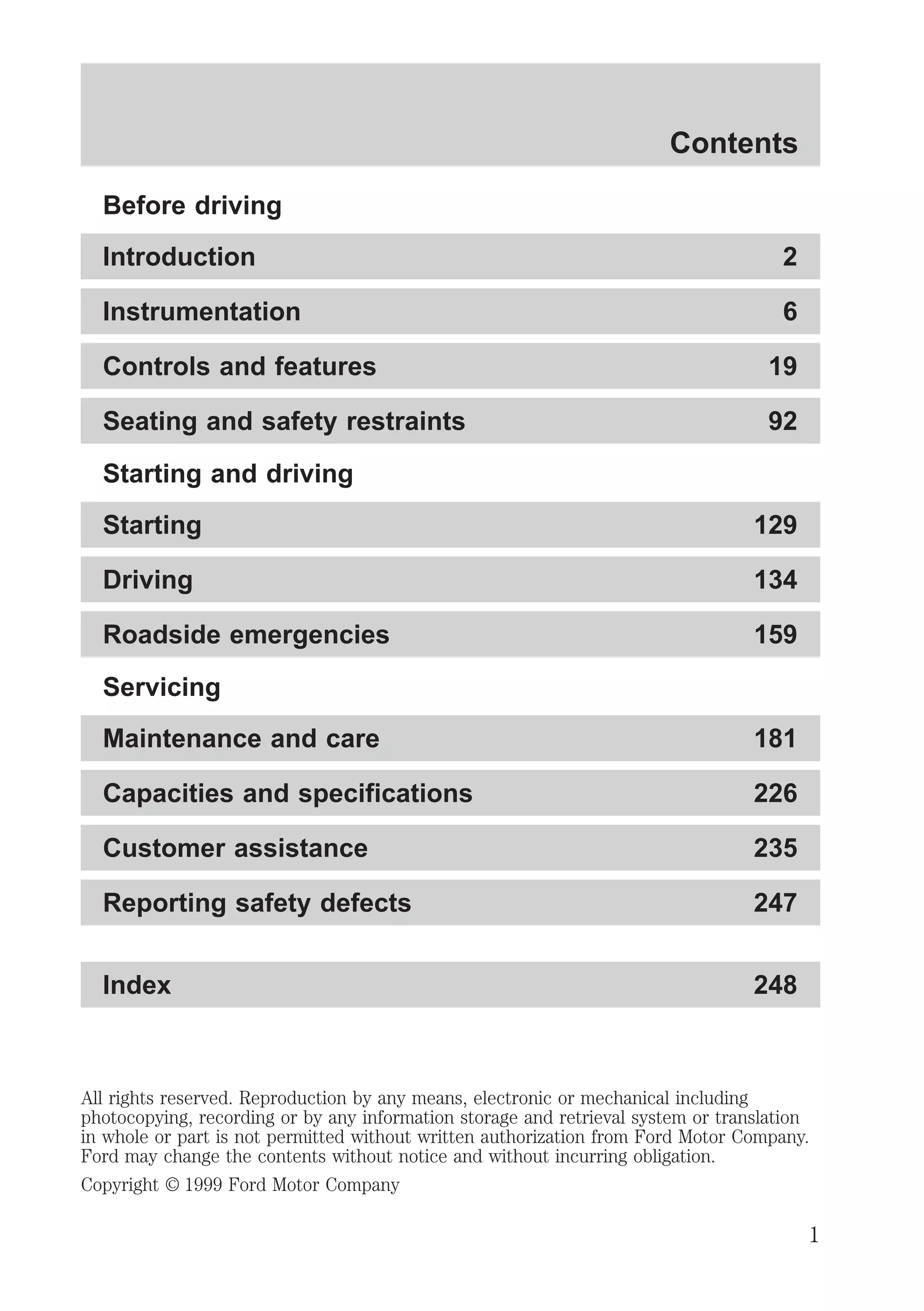 This document provides an overview of the instrumentation, controls, features, and systems of a vehicle. It includes descriptions of the dashboard components, warning lights, gauges, climate controls, and 4-wheel drive system. It also outlines what to do if warning lights illuminate and provides safety information for drivers.