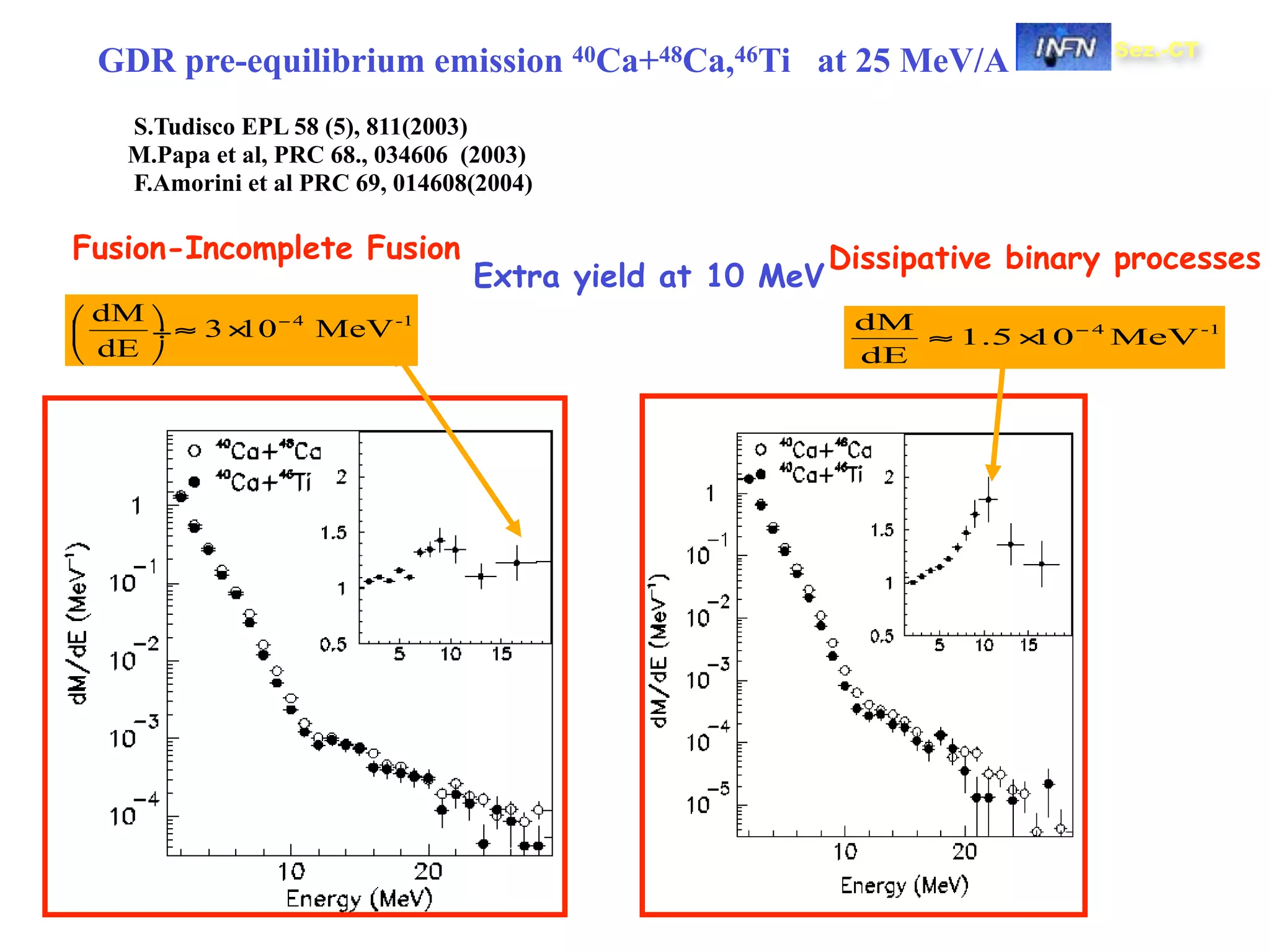 1. The document discusses gamma-ray pre-equilibrium emission from 40Ca+48Ca and 40Ca+46Ti collisions at energies ranging from 10-25 MeV/A.