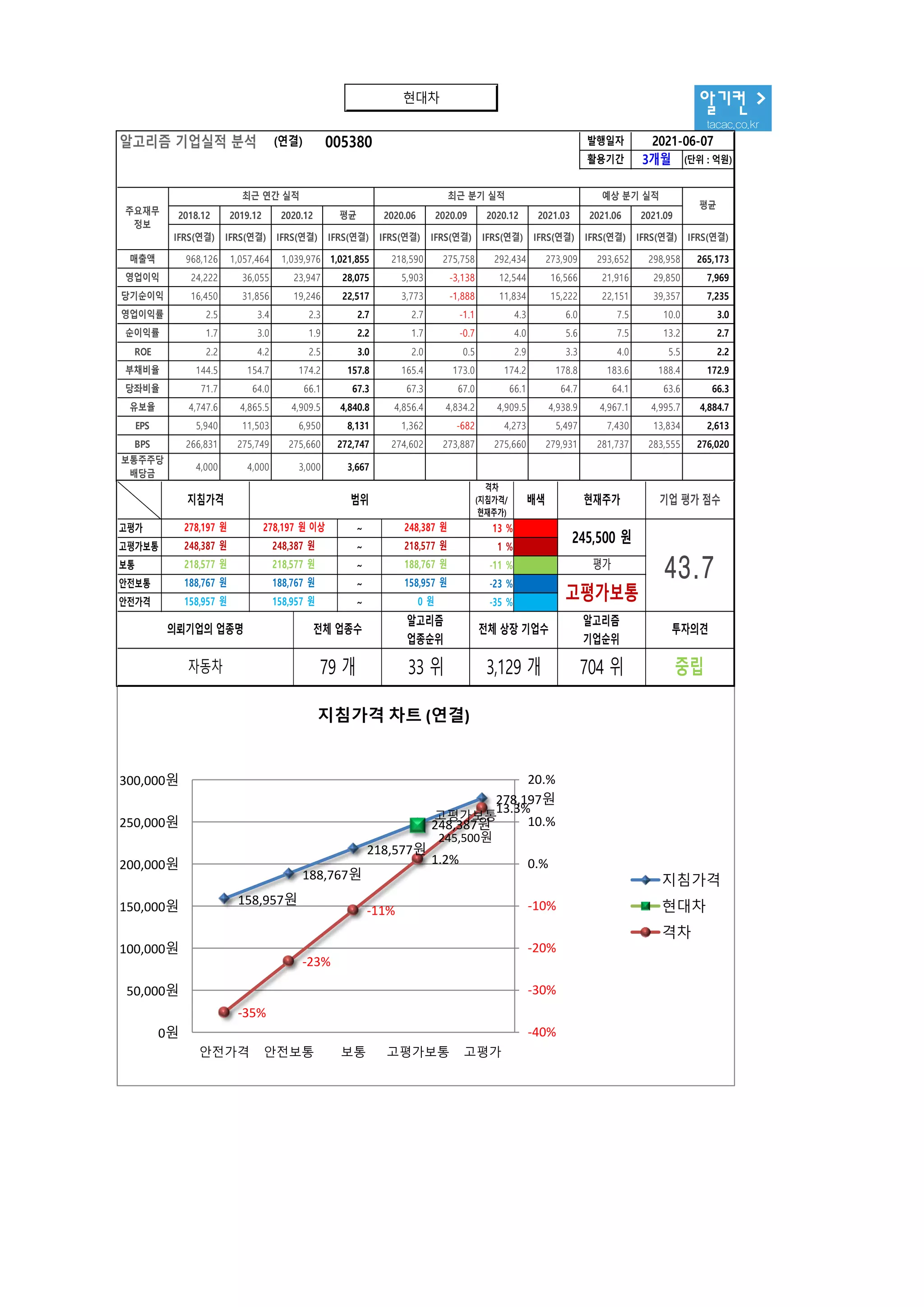 알고리즘 기업실적분석 (연결) 005380 발행일자