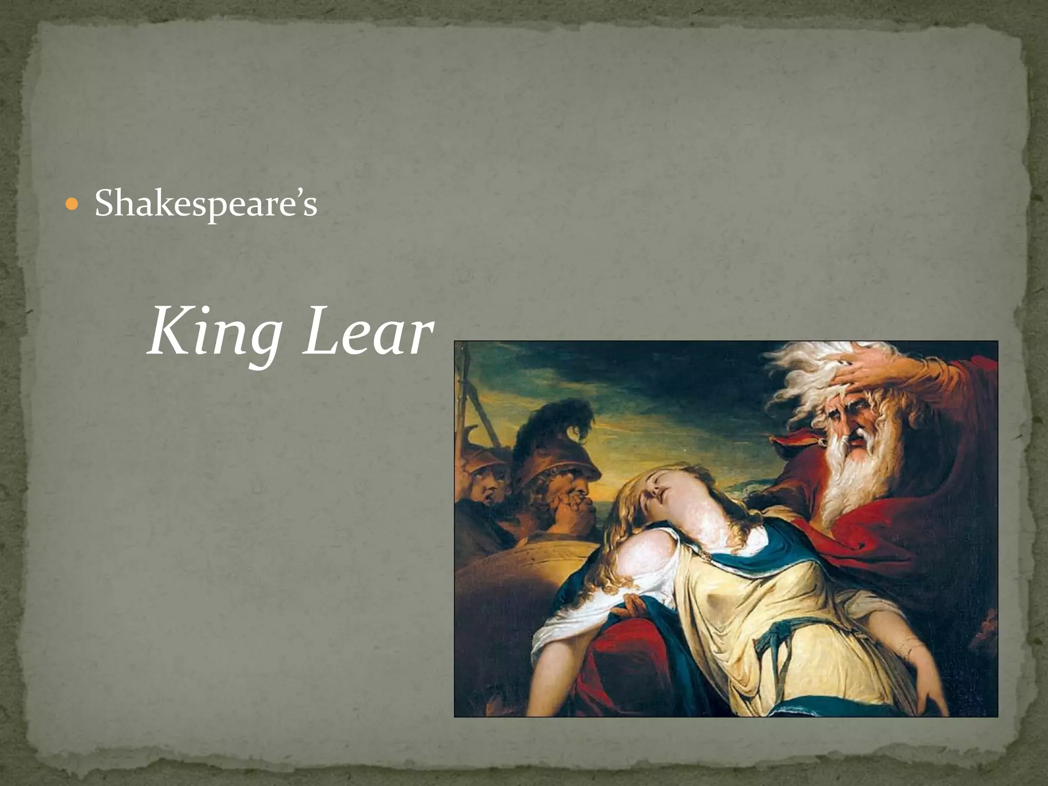 This document provides a summary of Shakespeare's play King Lear in 3 sections. It begins with background on the story and Shakespeare's sources. It then examines themes in the play around nature, order vs chaos, and the question of whether suffering can be redeemed. Finally, it analyzes psychological levels of characters, the roles of good and evil, and how chaos results from division but love can create meaning. The play is seen to illustrate that while the universe may be uncaring, human virtue, loyalty, and love can make life meaningful.