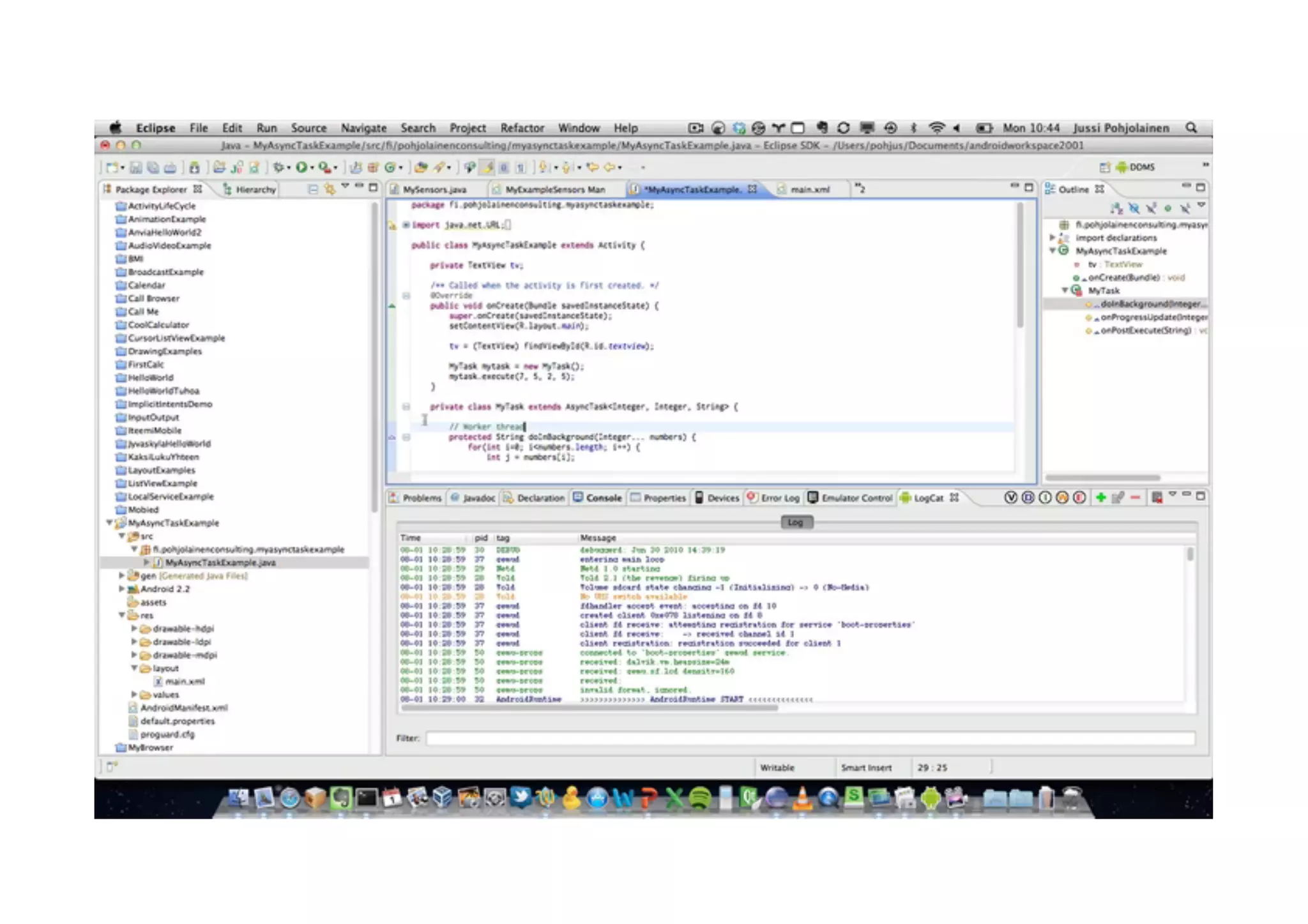 The document discusses Android networking and XML parsing using SAX. It describes how to make HTTP requests using URLConnection in Android, including opening a connection, preparing and sending requests, reading responses, and disconnecting. It also covers performing network requests asynchronously using AsyncTask to avoid blocking the UI thread. Finally, it provides an overview of XML parsing with SAX in Android.