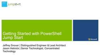 This document summarizes the first module of a PowerShell training course. It introduces Jeffrey Snover and Jason Helmick, the instructors. It provides background on each of them and their relevant experience. It then outlines the topics to be covered in the course, including getting started with PowerShell, remoting, automation, and scripting. It sets expectations that the course is aimed at IT professionals and recommends prerequisites. It also promotes the Microsoft Virtual Academy training program.