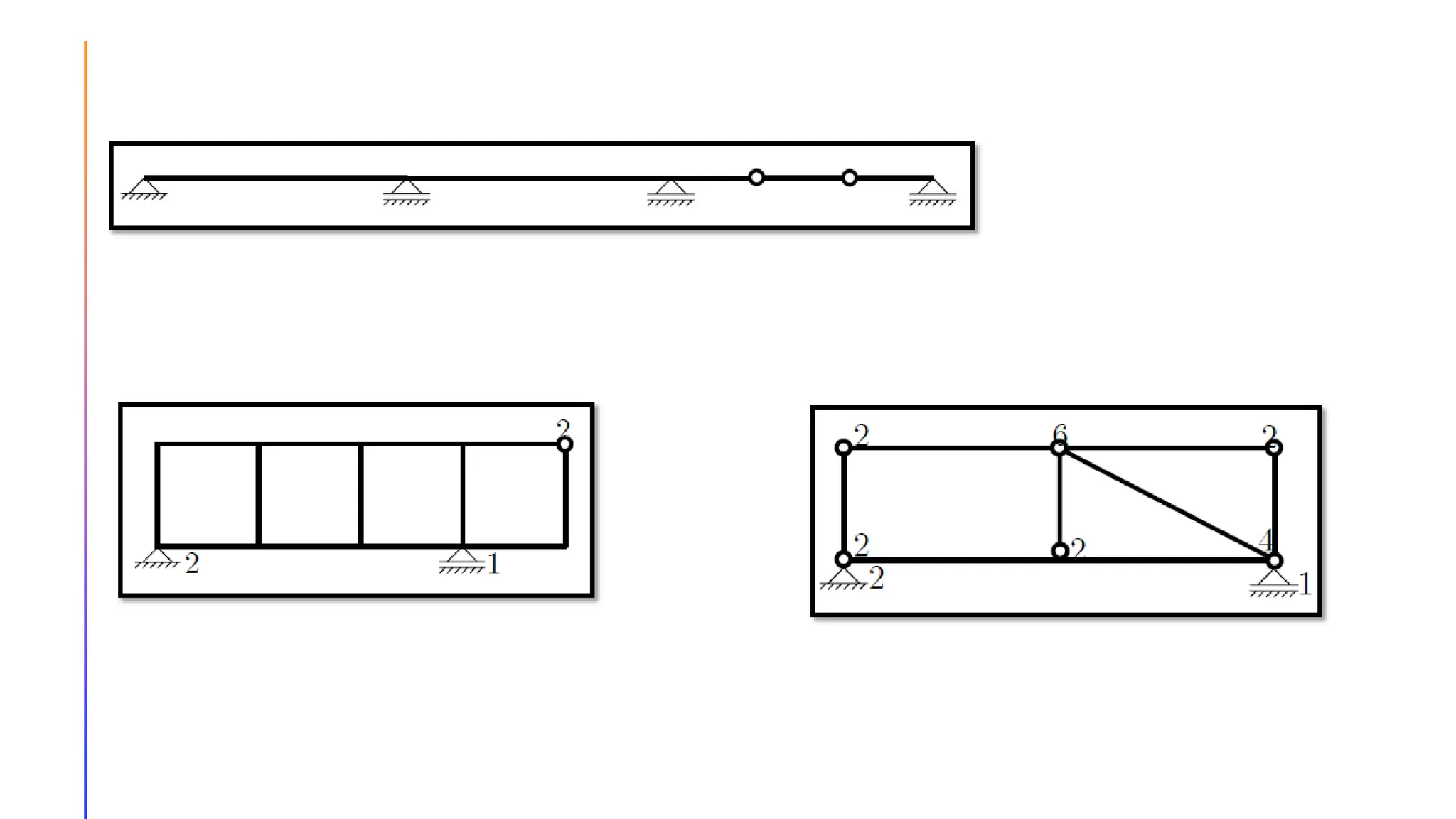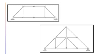 The document provides an introduction to statically indeterminate structures, highlighting the need for equilibrium equations and compatibility conditions to analyze internal forces and support reactions. It discusses advantages like smaller stresses and greater stiffness, alongside disadvantages such as sensitivity to support settlements and temperature changes. Various methods for analysis, including force and displacement methods, are outlined, alongside explanations of degrees of statical indeterminacy for beams, frames, and trusses.