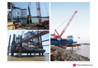 Monadelphous Marine provides marine construction and engineering services for resources projects. It is a joint venture between Monadelphous, an Australian engineering contractor, and Muhibbah Construction, which has experience in marine infrastructure. Monadelphous Marine can be involved early in projects to help with planning and risk mitigation. During project execution, it focuses on safety, environmental protection, and uses its fabrication facilities in Malaysia and China to deliver marine structures and equipment.