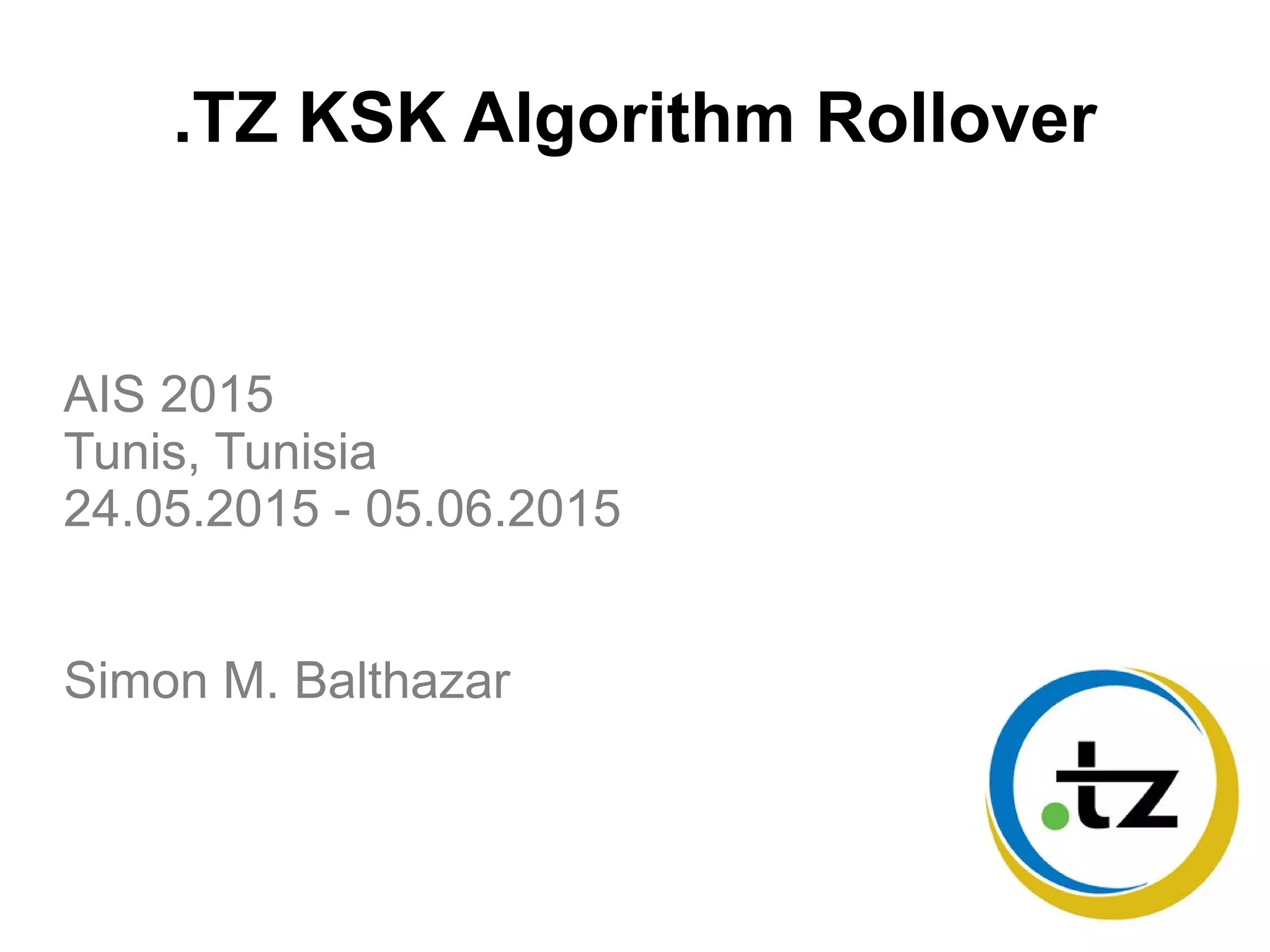 The document discusses the key signing key (KSK) algorithm rollover process for the .tz domain. It implemented a "double RRset" rollover method, where it generated a signed zone file with signatures from both the old and new KSK, submitted the new DS record to IANA, and waited for caches to expire before removing the old DNSKEY and DS records. This process allowed the .tz registry to upgrade its software while rolling over its KSK to a new algorithm, addressing security recommendations against the SHA1 algorithm. It required a manual process using dnssec-signzone due to limitations in OpenDNSSEC's support for multiple concurrent algorithms and offline KSKs.