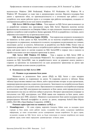 се разработват всякакъв вид приложения върху SQL Server. Версията включва всички