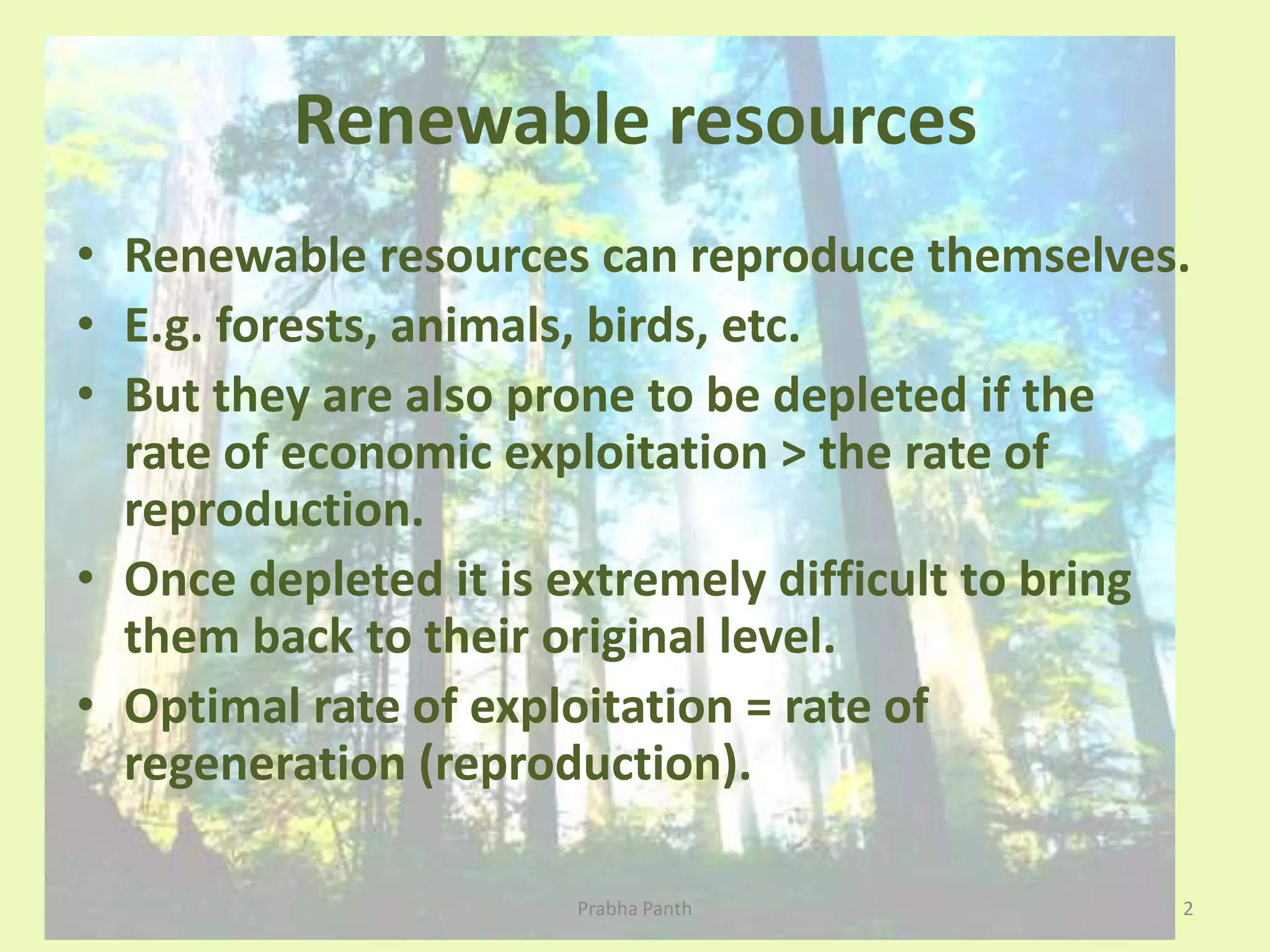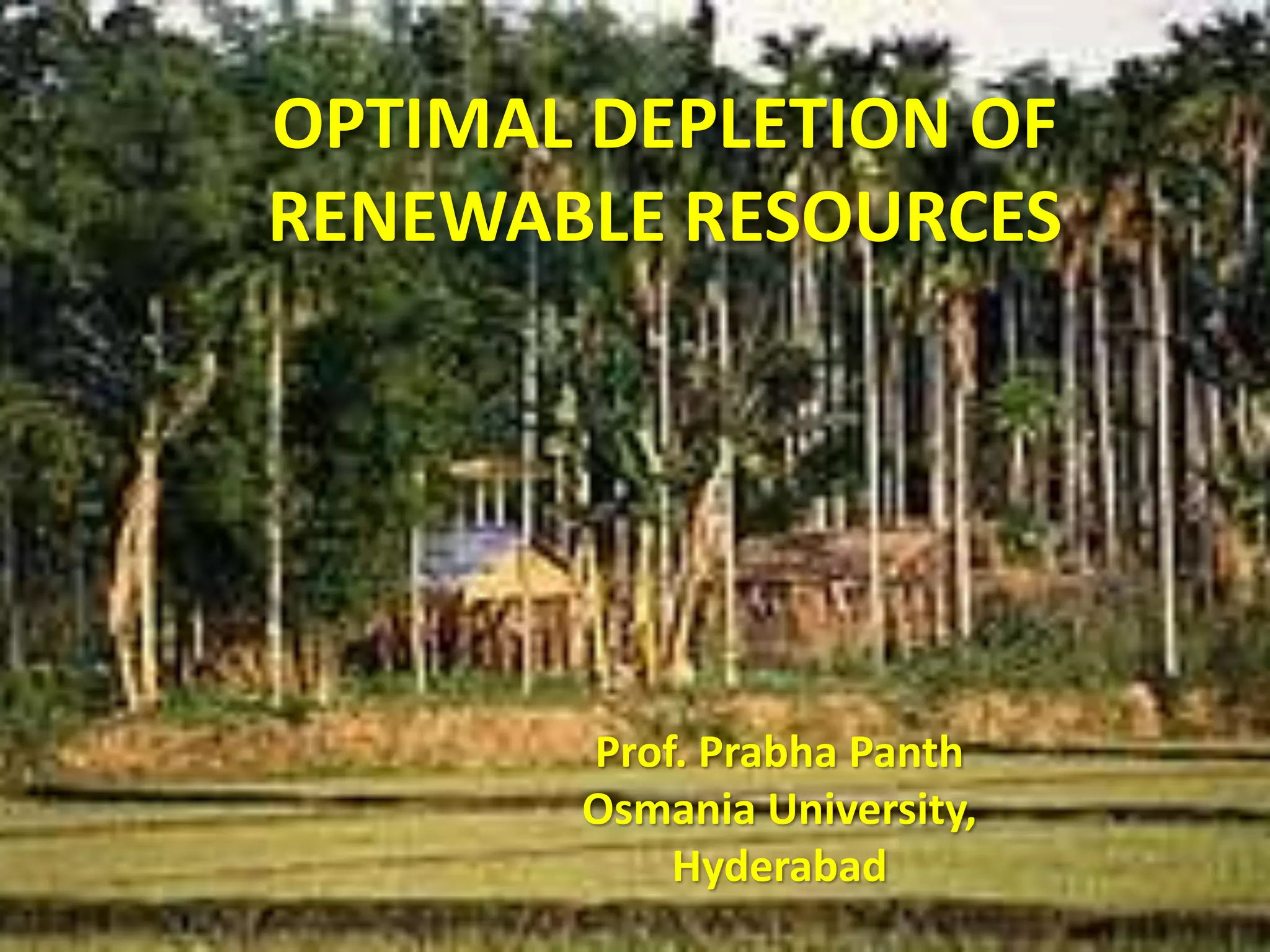 The document discusses the optimal depletion of renewable resources, emphasizing the importance of balancing the rate of exploitation with the rate of regeneration to avoid depletion. It uses the example of fish in a lake to illustrate sustainable yield and the critical minimum size, below which renewal becomes unviable. Additionally, it examines the economic implications of discount rates in resource harvesting decisions and the conflict between ecological sustainability and economic growth.