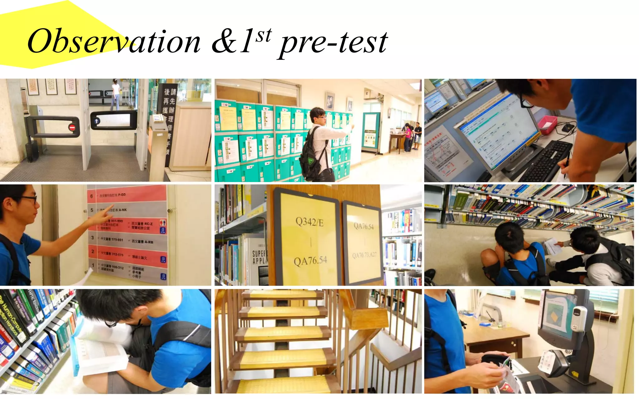 This document discusses wayfinding in a library. It includes diagrams of a library layout showing areas like the lobby, nodes, and cabinets. It also includes process diagrams showing how a reader can search for and check out books, get reminders about books, and have their book usage automatically tracked by the library system. Photos show examples of ID cards, book barcodes, and portable book carts used in the wayfinding process.