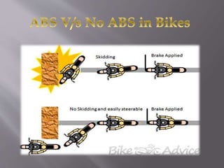 Anti-lock braking systems (ABS) help prevent wheels from locking up and the vehicle from skidding during heavy braking. ABS uses sensors to monitor wheel speed and quickly adjusts brake pressure to each wheel to maintain traction. It helps drivers maintain control and stability when braking heavily or in emergency situations. ABS has made braking safer and helped reduce accidents by preventing skids.