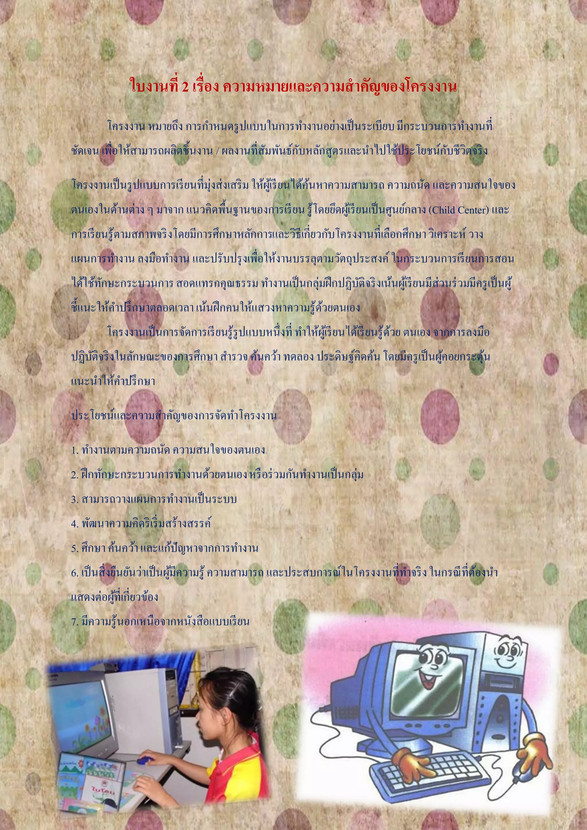 ใบงานที่ 2 เรื่อง ความหมายและความสำคัญของโครงงาน