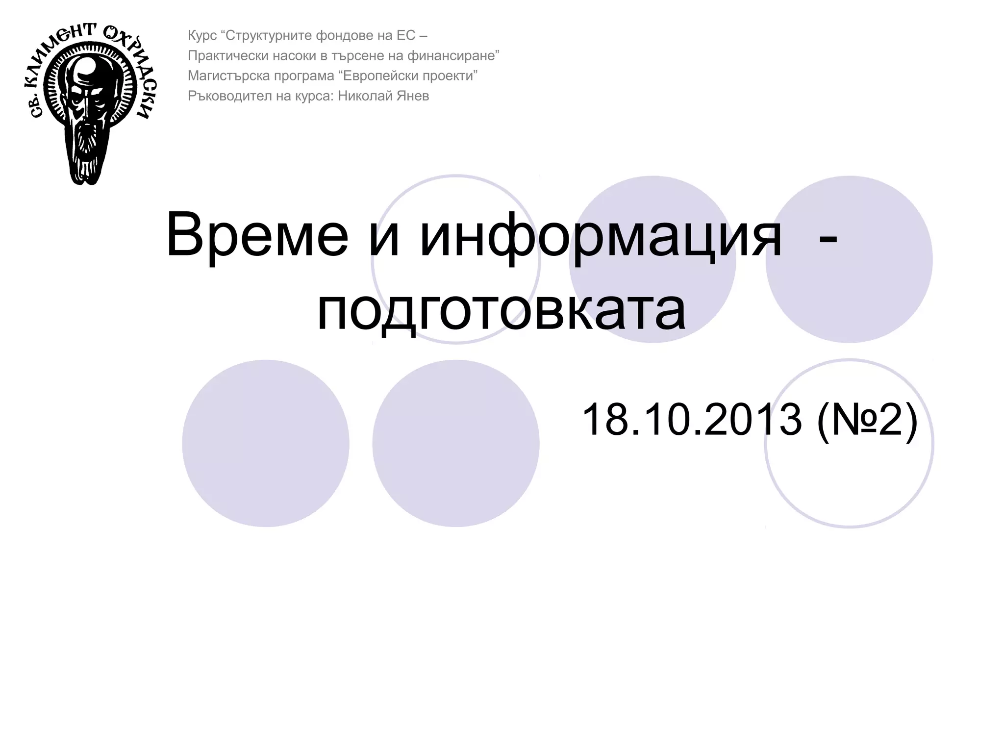 Време и информация подготовката
