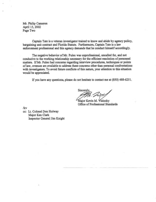 John Puleo, an FOP representative, objected to the procedures of an interview that Dennis Tate was conducting with Officer Walter Jefferson regarding a DUI arrest. During and after the interview, Puleo became angry with Tate and accused him of being unfair and a "hardass." Puleo ultimately called Tate an "asshole" before leaving. Tate reported the incident to his supervisors and provided contact information for Puleo.