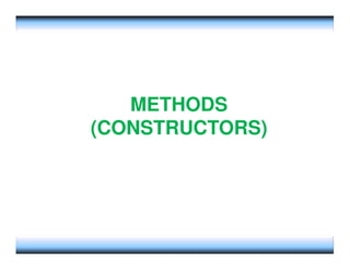 This document provides an overview of constructors and encapsulation in Java programming, explaining their roles in object-oriented programming. It details how constructors are special subroutines for creating objects, and the benefits of encapsulation for data management and protection. Additionally, the document covers the concept of composition, illustrating how simple data types can be combined into more complex objects.