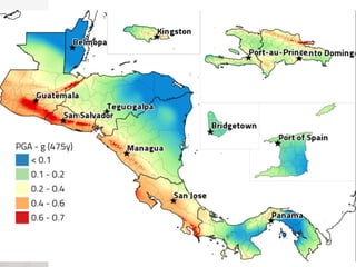This document summarizes the Caribbean and Central American Seismic Risk Assessment Project. The project uses an integrated framework to model seismic risk by assessing seismic hazard, exposure of the built environment, and physical and socioeconomic vulnerability. Building inventories and fragility curves have been developed for the Dominican Republic to estimate potential earthquake losses and inform risk reduction efforts. Calibration of vulnerability models is important to ensure realistic estimated losses that match observations from past earthquakes.