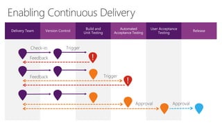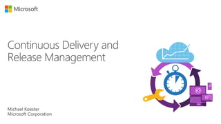 This document discusses how continuous delivery practices are reshaping application lifecycle management. It promotes using cloud-based development and test environments to improve code quality, increase delivery speed, and reduce costs. Specific tools mentioned include Azure for infrastructure automation, Visual Studio Release Management for deployment automation across hybrid environments, and Application Insights for production monitoring.