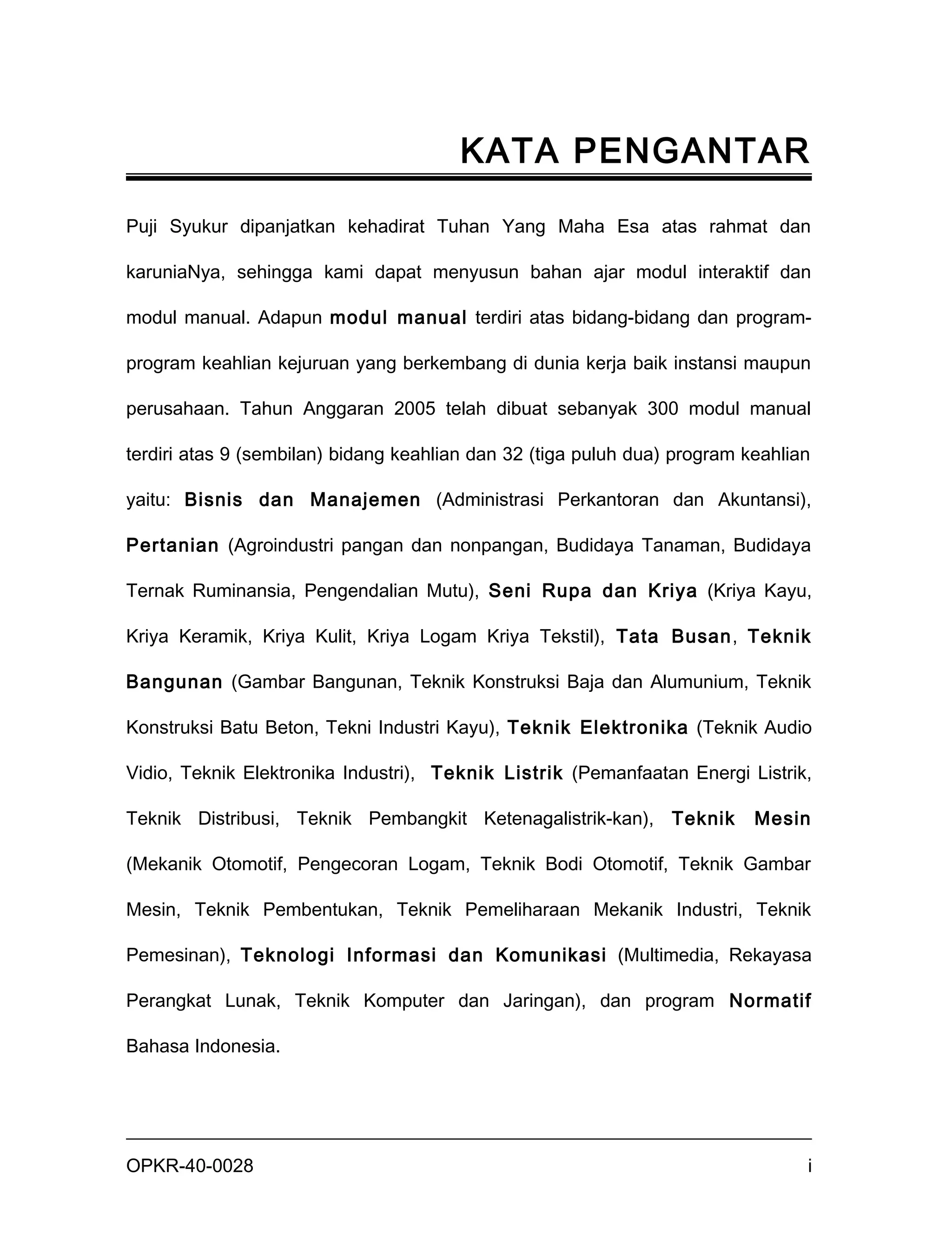 Dokumen tersebut merupakan kata pengantar untuk modul-modul kejuruan yang disusun oleh Direktorat Pembinaan Sekolah Menengah Kejuruan. Ringkasannya adalah: