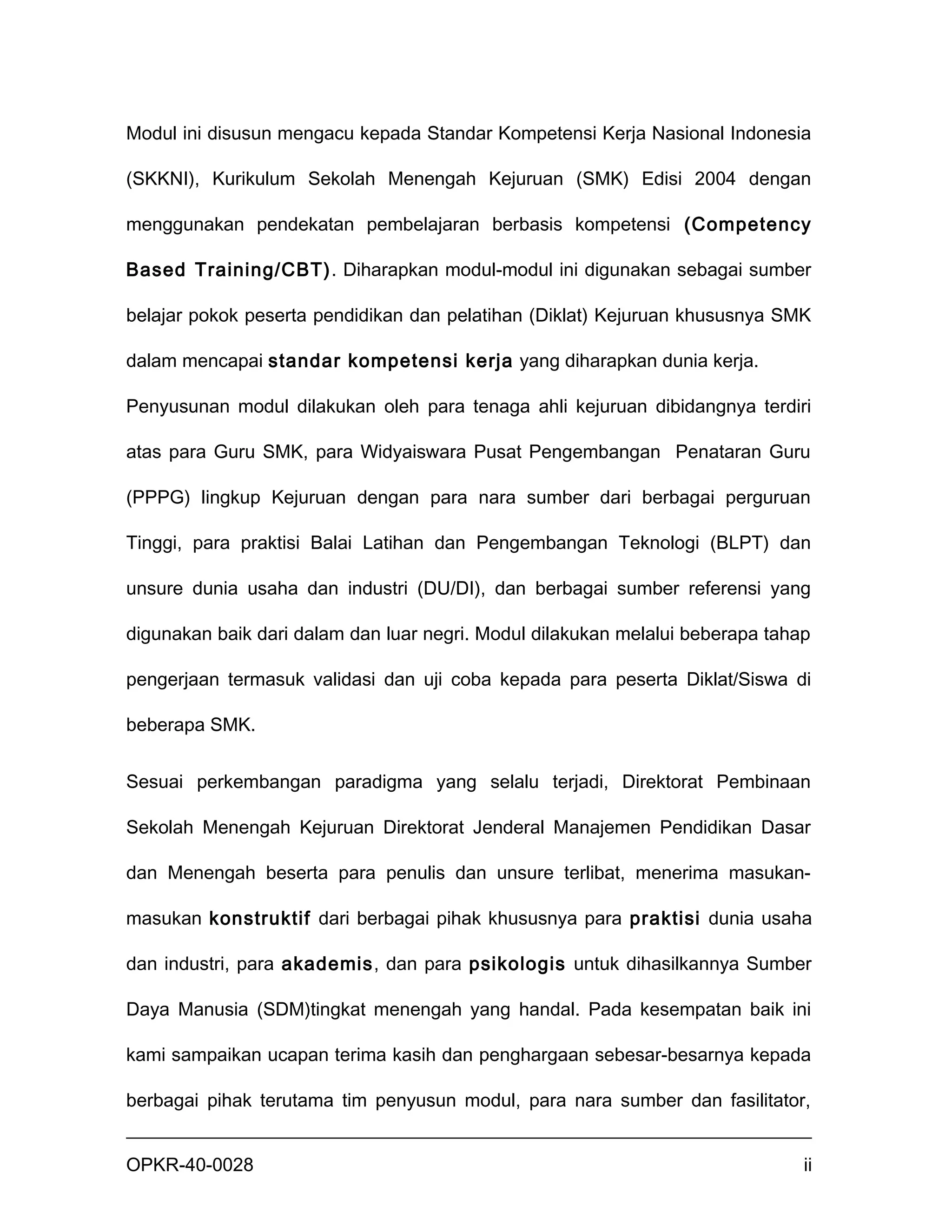 2. Modul disusun berdasarkan Standar Kompetensi Kerja Nasional Indonesia untuk memenuhi tuntutan dunia kerja