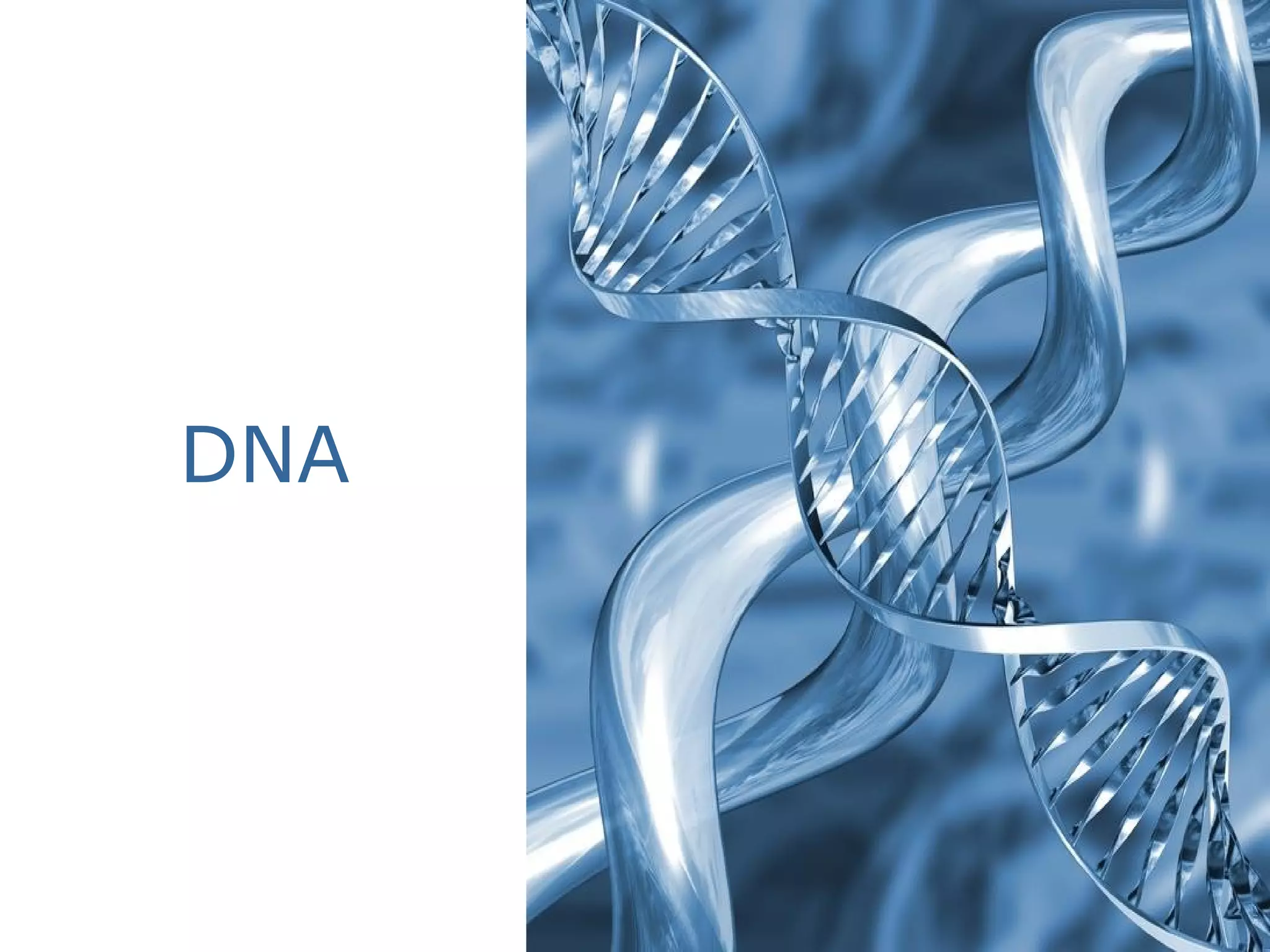 This document provides information about DNA, including its structure and function. It discusses that DNA contains genes which provide instructions passed down from parents and encoded in chromosomes. The key discoveries are outlined, including that DNA was shown to be made of nucleotides through the work of scientists like Hershey and Chase, and the double helix structure of DNA was elucidated by Watson and Crick based on Rosalind Franklin's X-ray images. Applications of DNA knowledge like cloning, creating transgenic organisms, and using recombinant bacteria are also summarized.