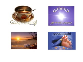 The document provides various greetings and farewells in English, including informal and formal expressions. It also includes polite expressions for thanks and apologies, along with their common responses. Additionally, it highlights different greetings gestures used around the world.